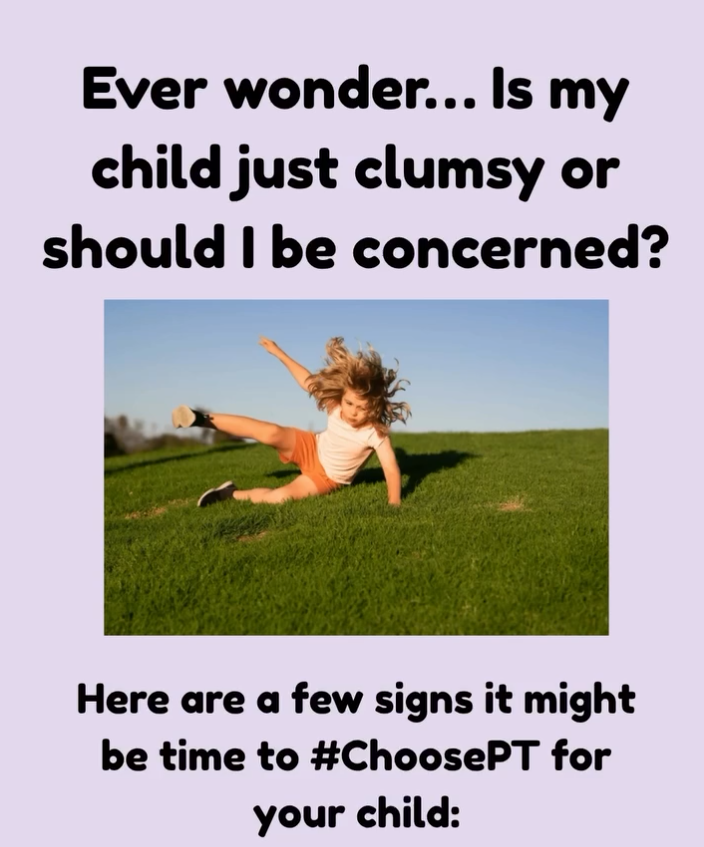 Is it just clumsiness… or something more? Here’s how to tell when it might be time to #choosept for your child! #pediatricpt #childdevelopment #parenttips #choosept